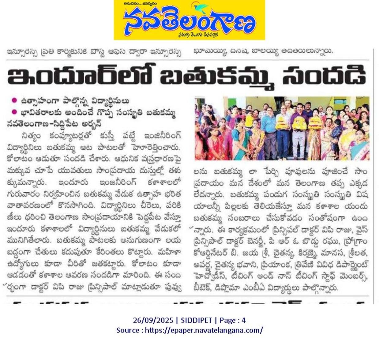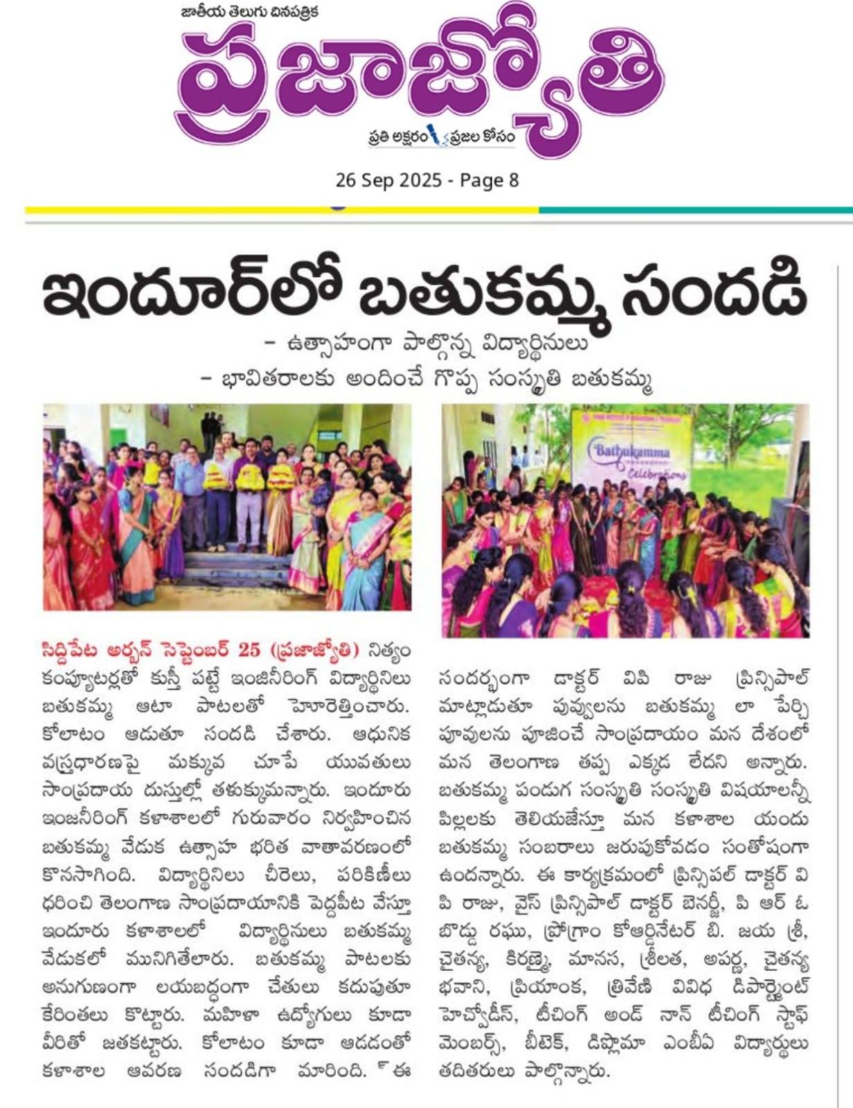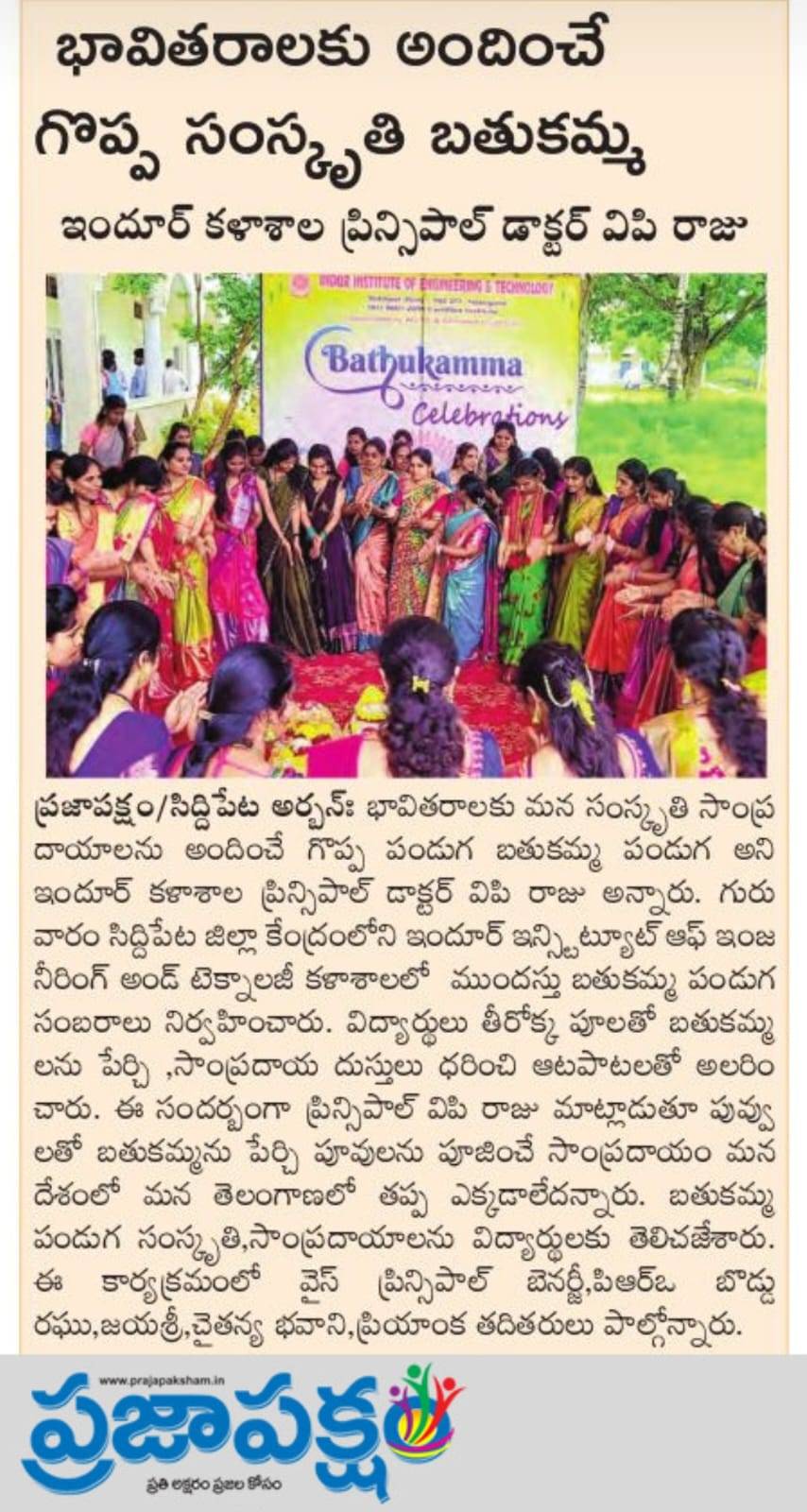 Indur Institute of Engineering & Technology, Siddipet is an independent educational establishment of excellence, geared up in its entirety to transform individuals into top notch intellects by imparting top technical education. Our unwavering commitment to Quality Education and Experiential learning ensure that our students develop the abilities for creative& innovative thoughts with critical thinking.